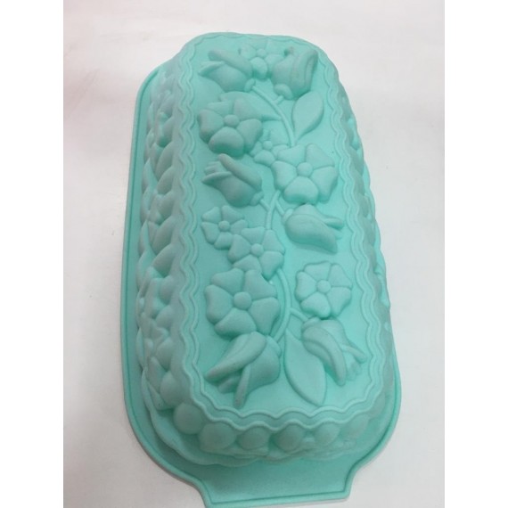 MOLDE SILICONA BUDIN CON FLORES 33 X 15 X 6